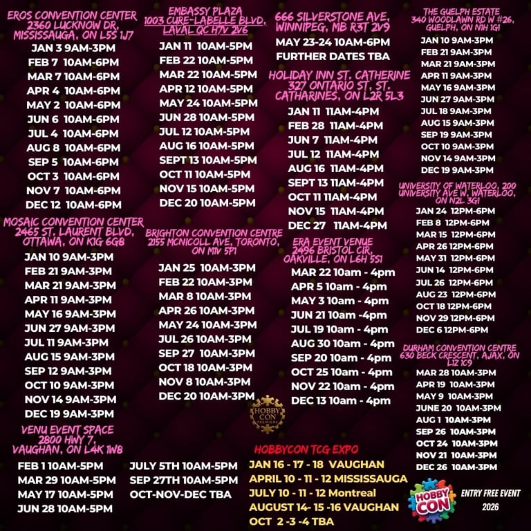 Join us at various locations across Canada and the USA for exciting Pokémon conventions and community gatherings.