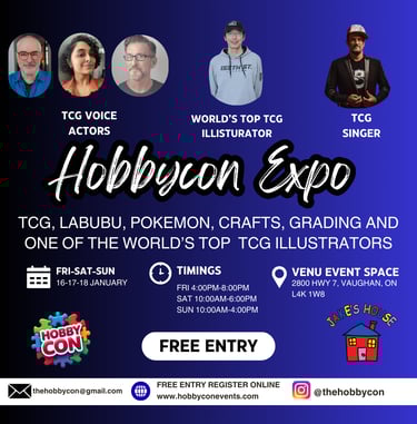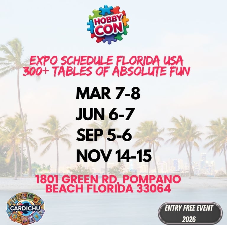 HobbyCon Events brings together passionate TCG, Sports and Hobby enthusiasts through conventions, fostering community, knowledge sharing, and lifelong friendships centered around Pokémon card trading and more.